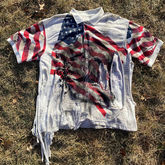 revolution t-shirt. hand painted, distressed, embroidered, and custom patch added. size L. available in store
